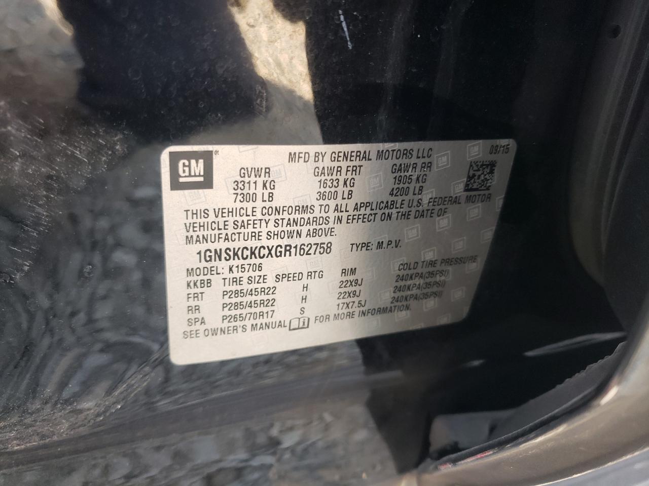 | VIN | 1GNSKCKCXGR162758 |